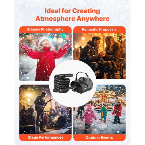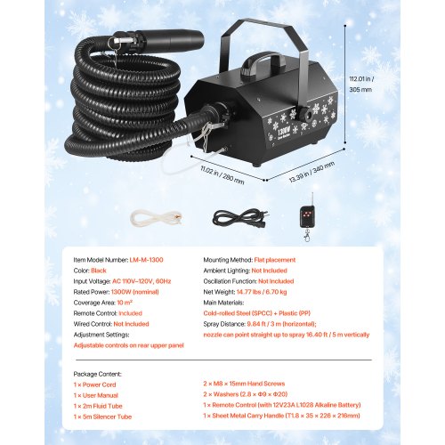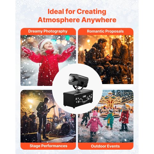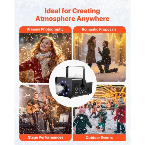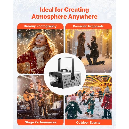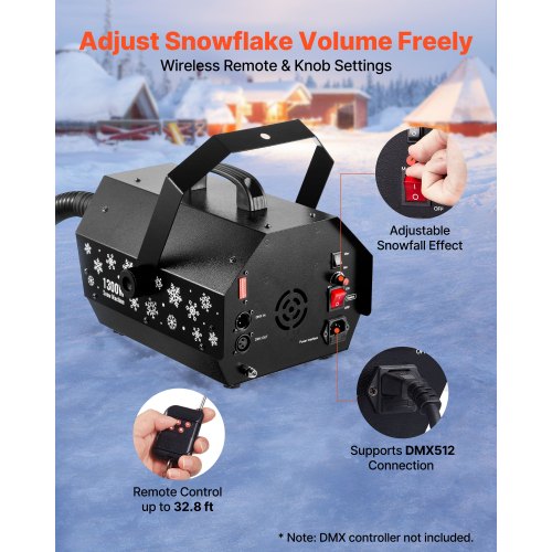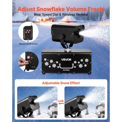 VEVOR Snow Machine, 1300W Super Silent Snow Maker, Portable Wireless Remote Control Snowmaking Machine, Outdoor & Indoor Snowflake Maker for Xmas Party Wedding Stages Mall Snowflake Effects Decor