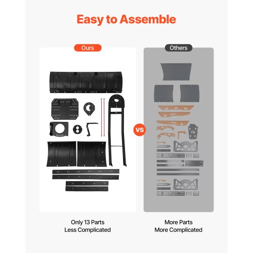VEVOR Snow Plow Blade, 43 in/72 in Width Adjustable Snow Plow Kit, Easy to Detach, Universal Mount Plowing Attachment with Rubber Flaps, Heavy Duty Steel Blade, Compatible with Most UTV & ATV