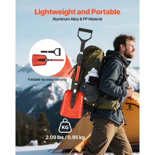 VEVOR Snow Shovel for Driveway, 9 in Foldable Snow Shovel with D-shaped Handle, , 36-40 in Adjustable, Lightweight Aluminum Alloy Snows Removal Tool, Reduce Back Strains for Garden Car Camping