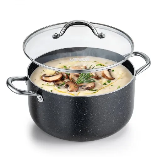 VEVOR Aluminum Stock Pot, 8-Quart Nonstick Ceramic Coated Pot with Glass Lid, PFOA-Free, PFAS-Free, Compatible with Gas Stoves, Induction Cooktops, Electric Stoves, for Soups, Stews, and Pasta