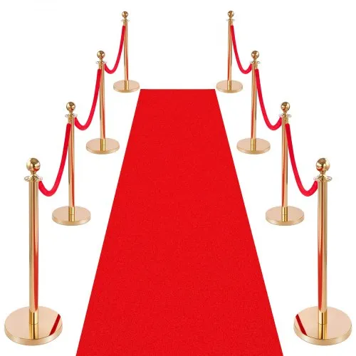 VEVOR Stanchion Post, 8 Pcs Crowd Control Barrier Set with Red Carpet, 6 Red Velvet Ropes, Stainless Steel Gold Stanchion Post Queue with Hollow Base for Theater, Party, Wedding, Exhibition (Gold)