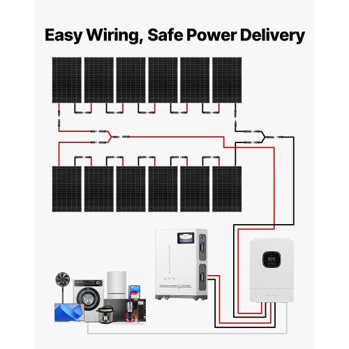 VEVOR 2400W 48V Complete Solar Power Kit, 12PCS 200W Monocrystalline Solar Panels + 51.2V 100Ah LiFePO₄ Battery + 48V 5000W Hybrid Inverter, High Output Off-Grid Solar Kit for Large House Shed Farm