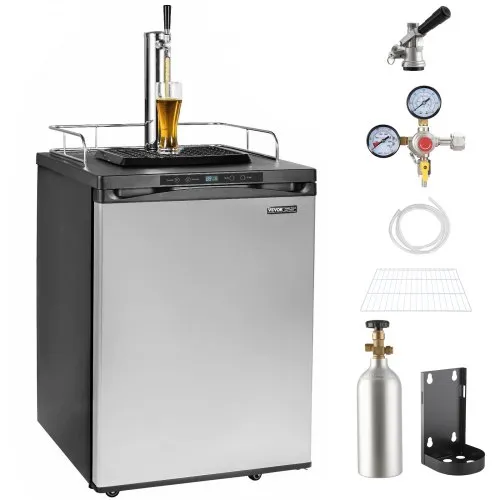 VEVOR Beer Kegerator, Single Tap Draft Beer Dispenser, Full Size Keg Refrigerator With Shelf, CO2 Tank(No Gas), Drip Tray & Rail, 23°F- 82.4°F Temperature Control, 162L, Silver