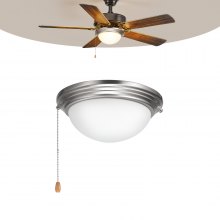VEVOR Ceiling Fan Light Kit, 750lm 3000K Bowl Shaped Fan Light Kit with Pull Chain, 2 LED Bulbs, Replacement Fixture for Living Room, Dining Room, Bedroom, Indoor, White Glass Shade Brushed Nickel