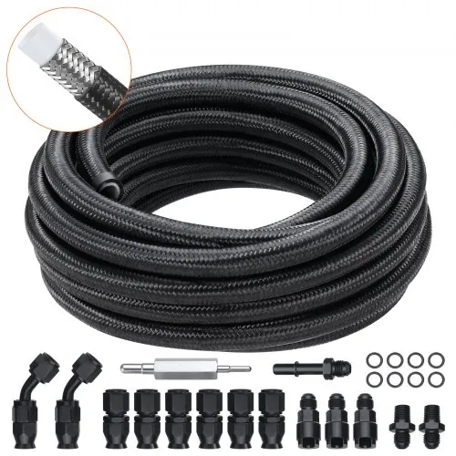 VEVOR 6AN Fuel Line Kit, 20 FT Fuel Hose Kit, 0.34" Nylon Stainless Steel Braided Fuel Line Oil/Gas/Diesel Hose End Fitting Kit, with 12 PCS Swivel Fitting Adapter Kit, Black