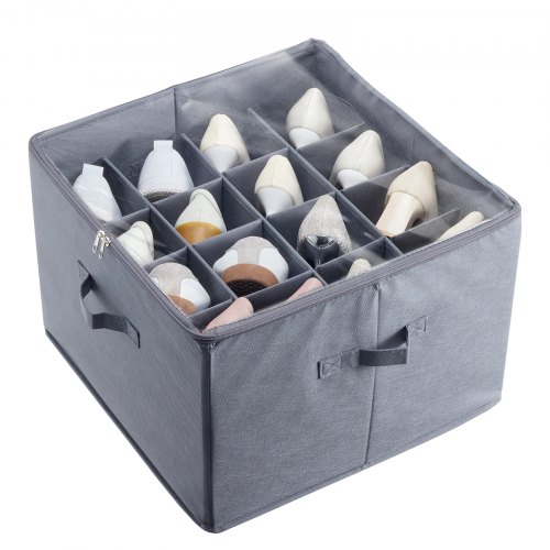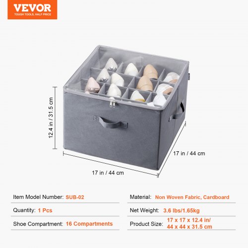 VEVOR Under Bed Shoe Storage Organizer, 1 Pack, 16 Compartments, Underbed Shoe Box Storage Containers Adjustable Dividers, Sandal Organizer Storage with Clear Window, Breathable, Reinforced Handles