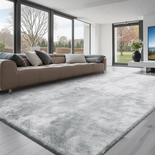 VEVOR Indoor Plush Area Rugs, 9 x 12 ft Soft Plush Carpet, Furry Shag Area Rugs for Living Room, Bedroom, Modern Home Decor Aesthetic Long-Pile Rug, Non-Shedding, Slip-Resistant, Tie-Dye Light Gray