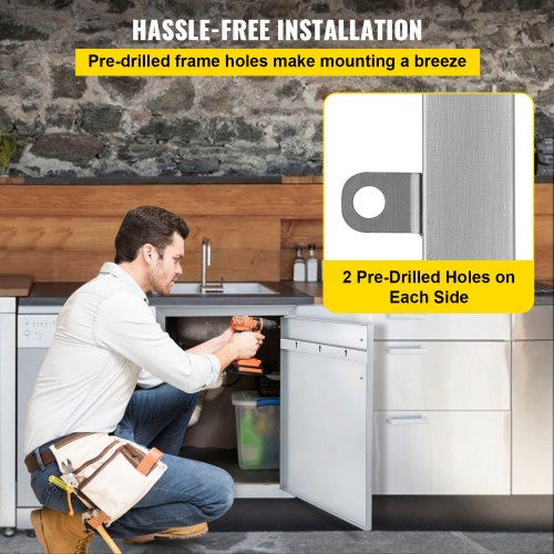 VEVOR Outdoor Kitchen Drawers, 18.5"W x 22.5"H x 22.5"D Triple Access Drawers, Stainless Steel Flush Mount Cabinets, BBQ Island Drawers Storage with Handle, for Outdoor Kitchens or Patio Grill Station