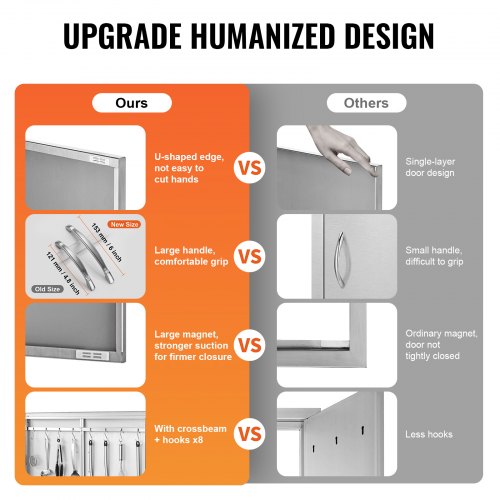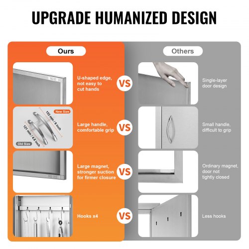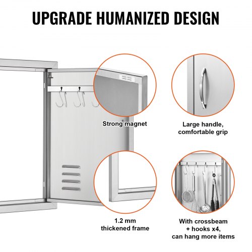 VEVOR BBQ Access Door, 31W x 24H Inch Double Outdoor Kitchen Door, Stainless Steel Flush Mount Door, Double Wall Vertical Door with Handles and Hooks, for BBQ Island, Grilling Station, Outside Cabinet