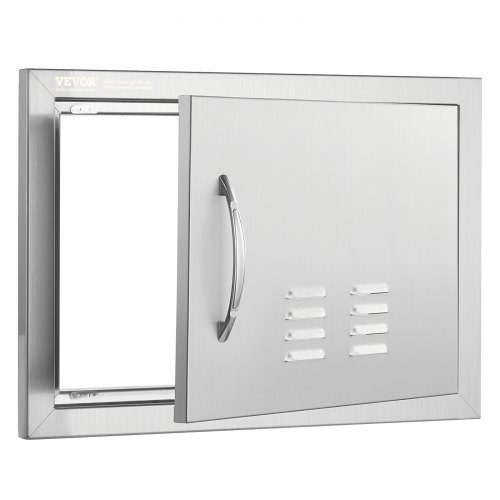 VEVOR BBQ Access Door, 24W x 17H Inch Single Outdoor Kitchen Door, Stainless Steel Flush Mount Door, Wall Vertical Door with Handle and vents, for BBQ Island, Grilling Station, Outside Cabinet