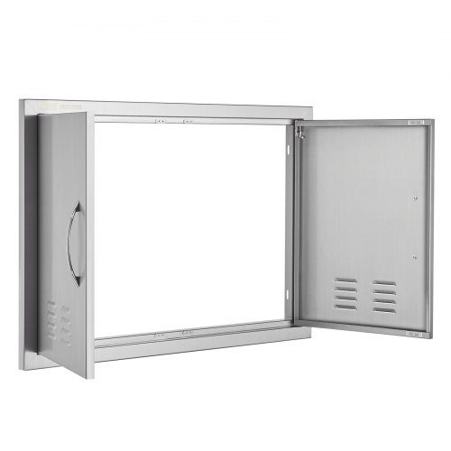VEVOR BBQ Access Door, 30W x 21H Inch Double Outdoor Kitchen Door, Stainless Steel Flush Mount Door, Wall Vertical Door with Handles, for BBQ Island, Grilling Station, Outside Cabinet