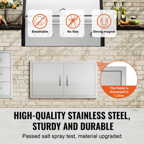 VEVOR BBQ Access Door 36W x 21H Inch, Double BBQ Door Stainless Steel, Outdoor Kitchen Doors for BBQ Island, Grill Station, Outside Cabinet
