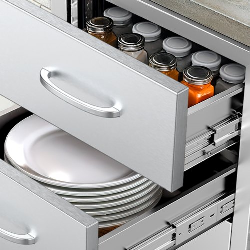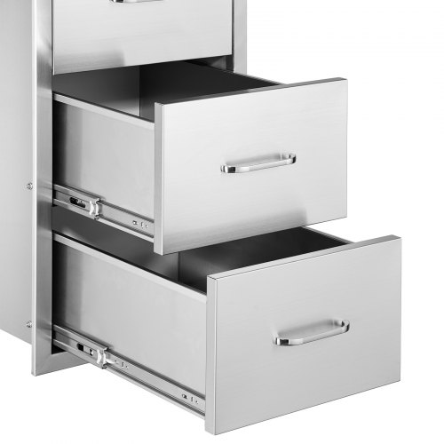 VEVOR Outdoor Kitchen Drawers 18.11" W x 23.23" D x 23.23" H, Triple-Access Stainless Steel Modular Drawer Cabinet with Handles, BBQ Island Drawer for Outdoor Kitchen or BBQ Island Patio Grill Station