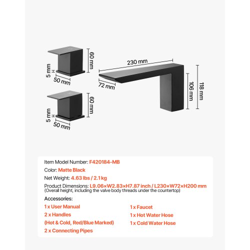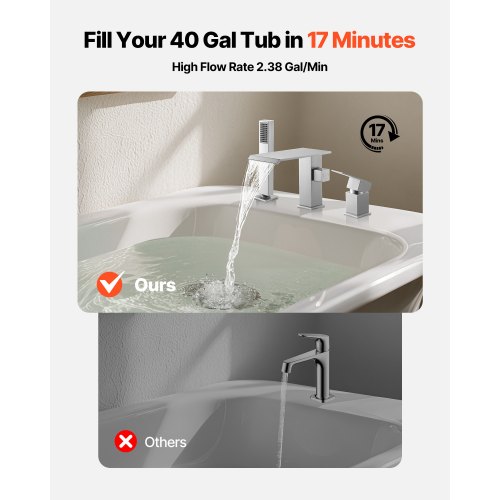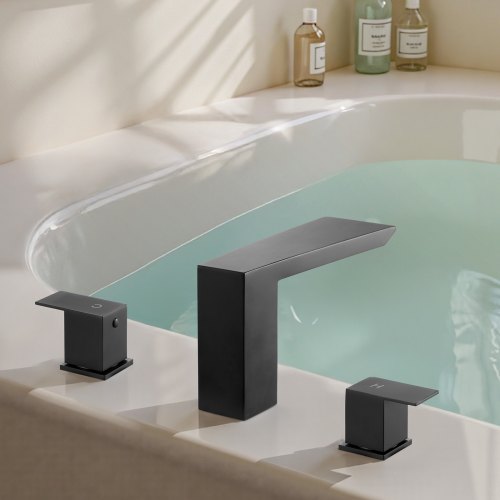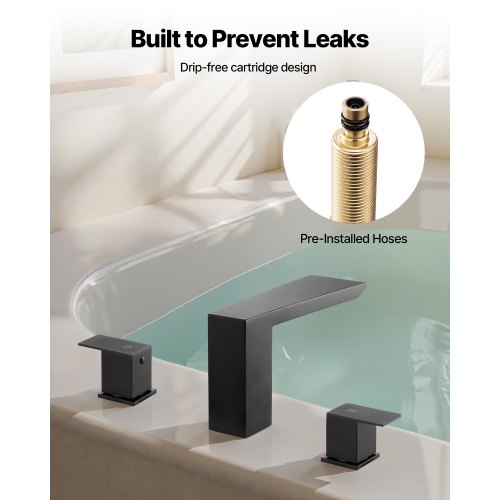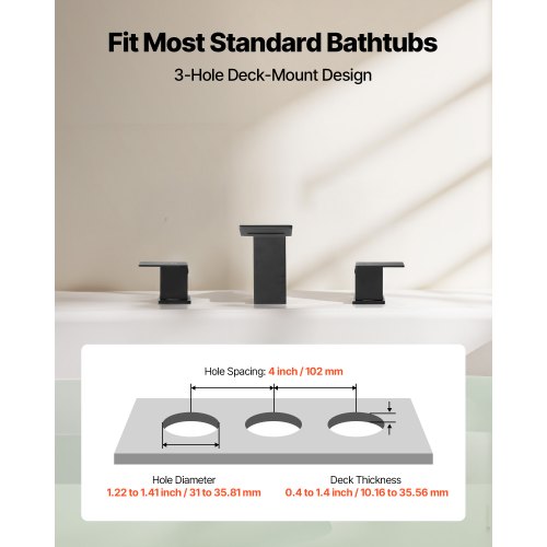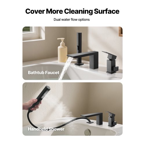 VEVOR Tub and Shower Faucet Set, Complete with 6-Inch Rainfall Shower Head and Bathtub Spout, Single-Spray Single-Handle Tub Trim Kit with 304 Stainless Steel Valve Trim for Bathrooms, Matte Black