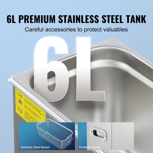 VEVOR Ultrasonic Cleaner with Digital Timer & Heater, Professional Ultra Sonic Jewelry Cleaner, Stainless Steel Heated Cleaning Machine for Glasses Watch Rings Small Parts Circuit Board (6L)
