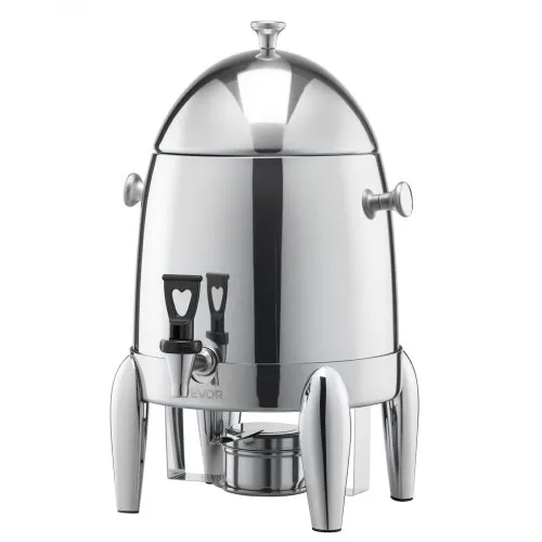 VEVOR Stainless Steel Beverage Dispenser, 2.7 Gallon Drink Dispenser with Alcohol Burner, Hot & Cold Drink Dispensers for Coffee Tea Hot Water, with Spigot Ice Tube, for Restaurants, Hotels, Parties