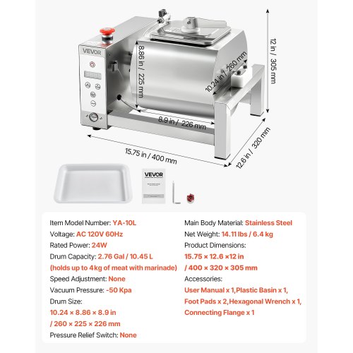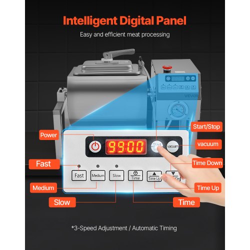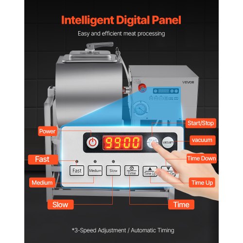 VEVOR Commercial Meat Tumbler Marinator, 20L Vacuum Tumbler Marinating Machine with Bidirectional Rotation and 3-Speed, Stainless Steel Vacuum Curing Machine for Chicken Steak Pork, Restaurant