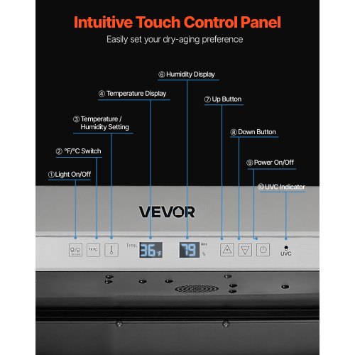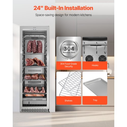 VEVOR 298 LBS Dry Aging Fridge for Steaks, Dry Ager Refrigerator for Meat with Precise Temperature & Humidity Control, Freestanding & Built-in Beef Aging Machine for Home Kitchen Restaurant Hotel