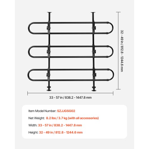 VEVOR Dog Car Barrier, Adjustable Universal-Fit Vehicle Pet Barrier for Cars, Trucks and SUVs, Easy to Install Dog Car Gate - Strong Metal Tubing Gate Divider, Keeps Pets off Passenger Seats, Black