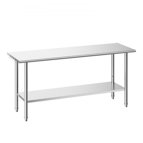 VEVOR Stainless Steel Work Table, 24 x 24 x 26 Inch Commercial Food Prep Worktable, 3-Sided Backsplash Heavy Duty Prep Worktable, Metal Work Table with Adjustable Height for Restaurant Home Hotel