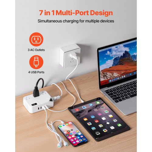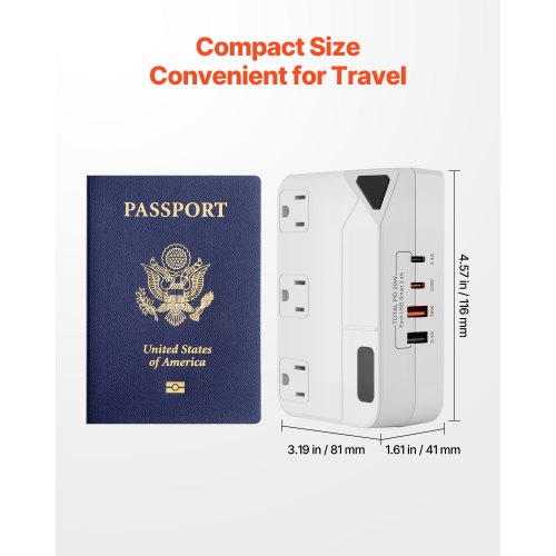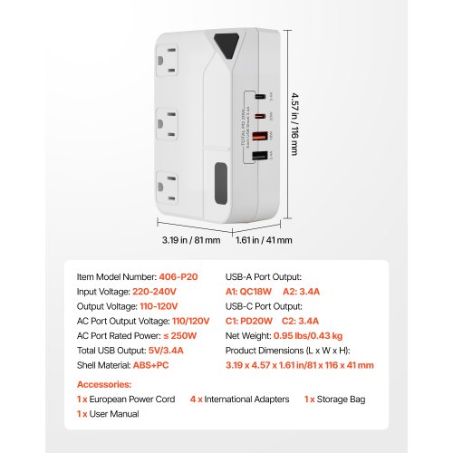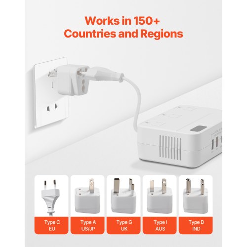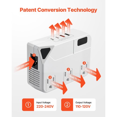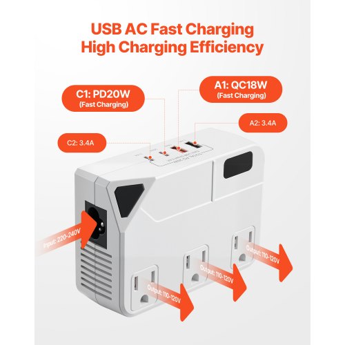 VEVOR Voltage Converter, 220V to 110V, International Universal Travel Adapter with 4 USB Ports (2 USB C), 3 AC Sockets, Plug Power Adapter, Step Down Transformer Outlet Converter, for EU UK AU US