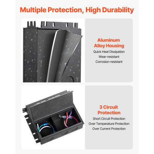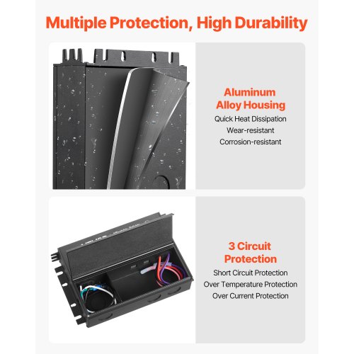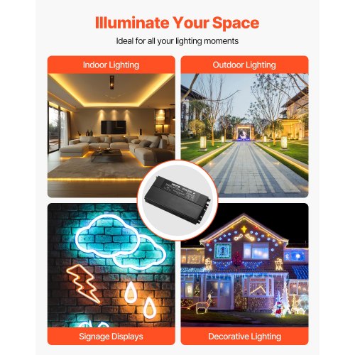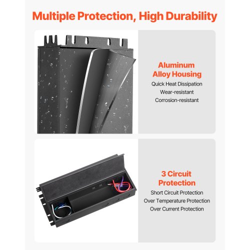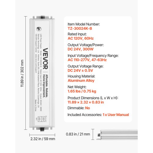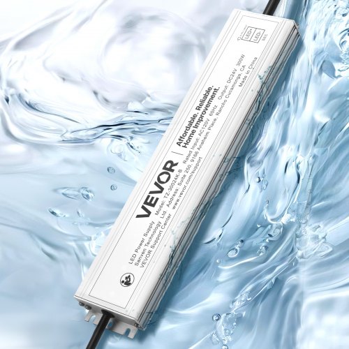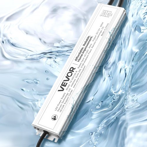 VEVOR LED Driver 300 Watts, 24V DC, Waterproof IP67 Low Voltage Power Supply Transformer, AC to DC Converter with Plug, Aluminum Alloy Housing, Easy Installation, for Indoor Outdoor LED Strip Lights