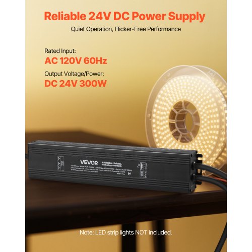 VEVOR 300W Dimmable LED Driver, 24V, Triac/ELV/MLV AC to DC Power Supply Transformer for LED Strip Light, Smooth Flicker-Free Dimming, Constant Voltage, Compatible with Lutron Leviton Dimmer Switches