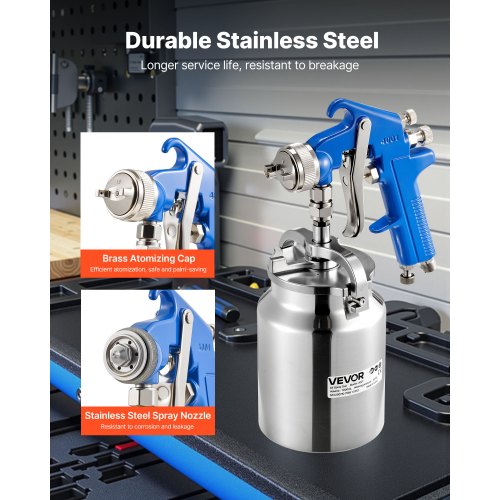 VEVOR Siphon Feed Spray Gun, High Atomization Air Paint Spray Gun, 1000cc Automotive Paint Sprayer with 1.8 mm Nozzle, Adjustable Flow Rate & Air Volume for Car, Furniture, Wall, House Painting