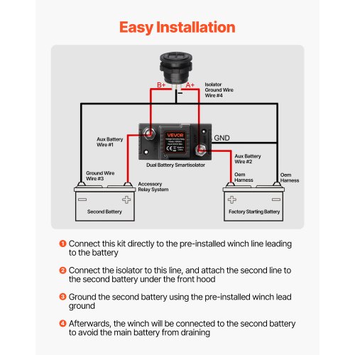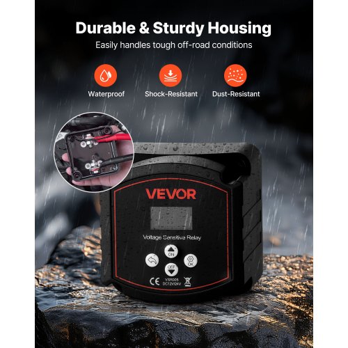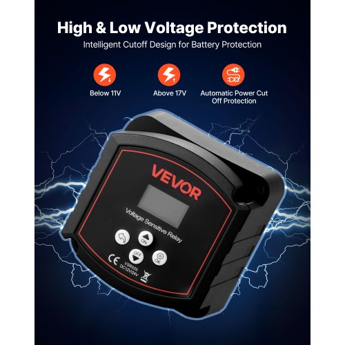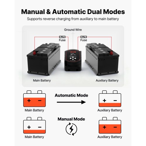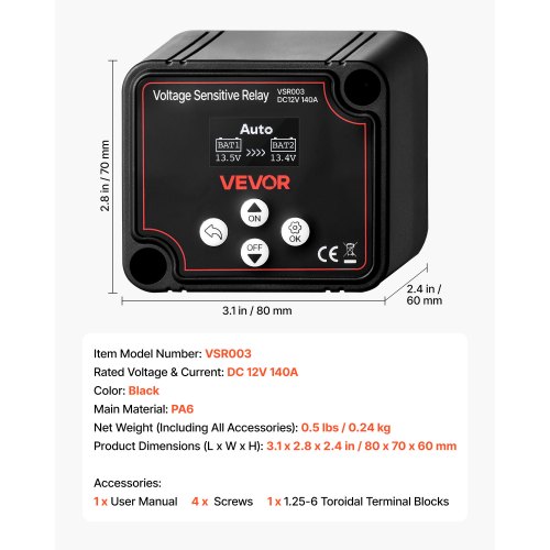 VEVOR Dual Battery Isolator Kit, 12V 140 Amp, Manual and Automatic VSR Voltage Sensitive Relay with Voltmeter, LCD Screen, Smart Battery Isolator, Compatible with Lead-Acid Batteries, for UTV, ATV