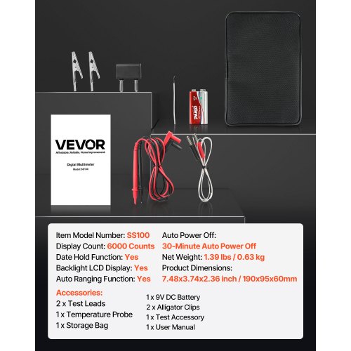VEVOR Subterranean Wire Tracker, Up to 3 FT Detection Depth, Voltage Range 12-600V, Circuit and Line Break Locator, Extends to 6561 FT for Underground Pipes, Electric Fencing, Hidden Wires