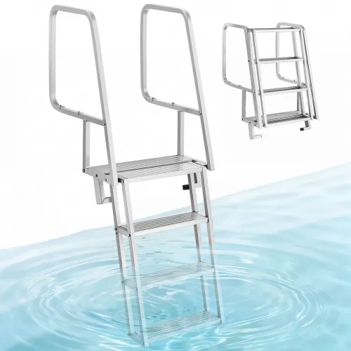 VEVOR Removable Dock Ladder, 3 Steps, Aluminum Alloy Pontoon Boat Swim Ladder, with Non-Slip Wide PP Steps, 500 lbs Weight Capacity, Quick Release Design, for Lake Swimming, Pool, Marine Boarding