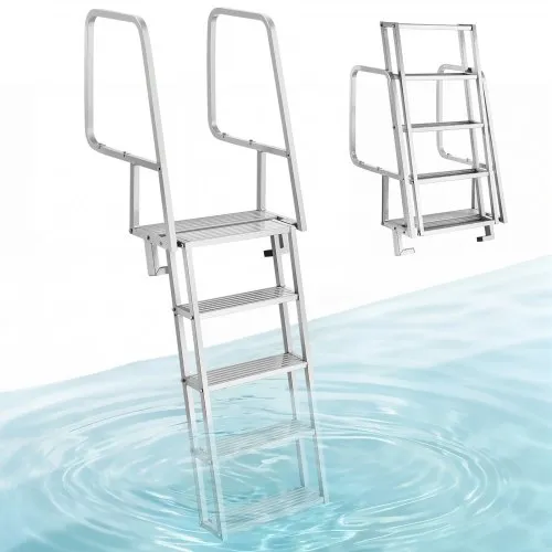 VEVOR Dock Ladder Flip-Up 4 Steps, 350 lbs Load Capacity, Aluminum Alloy Pontoon Boat Ladder with Nonslip Mat, Swimming Ladder for Ship/Lake/Pool/Marine Boarding