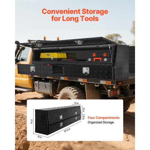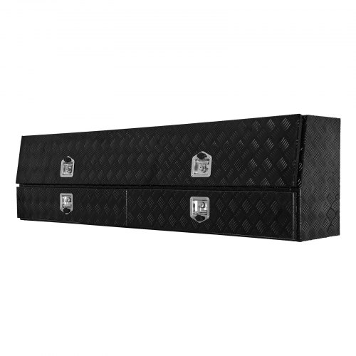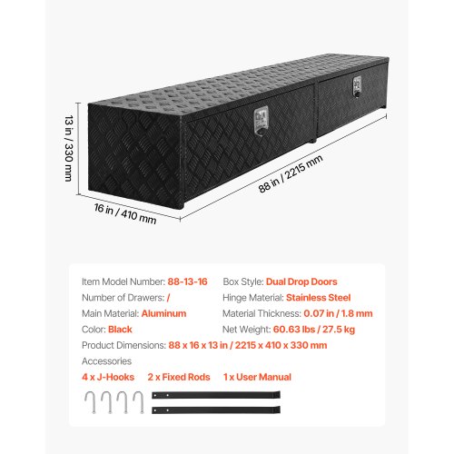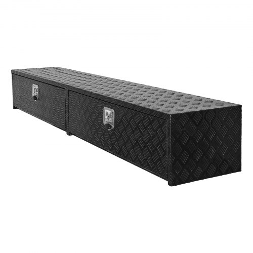 VEVOR Truck Tool Box, 88 x 16 x 13 Inch, Black Aluminum Tread Topsider Toolbox with Dual Drop Doors, Heavy Duty Lockable Storage and Organization Box with Latch, Corrosion-Resistant, for Truck Bed
