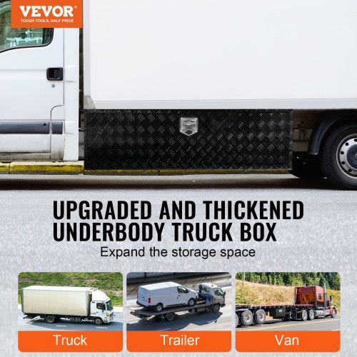VEVOR Underbody Truck Box, 60" x 17" x 18" Pickup Storage Box, Heavy Duty Aluminum Diamond Plate Tool Box with Lock and Keys, Waterproof Trailer Storage Box with T-Handle Latch for Truck, Van, Trailer