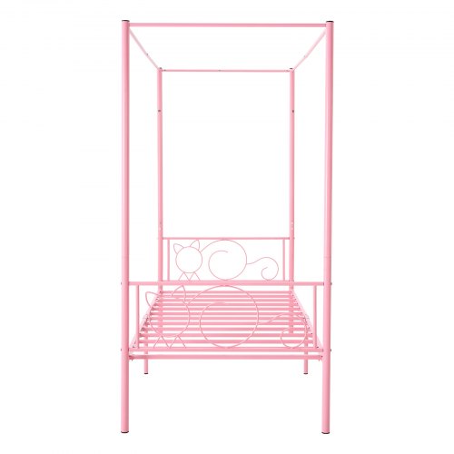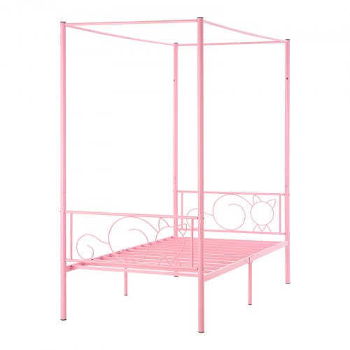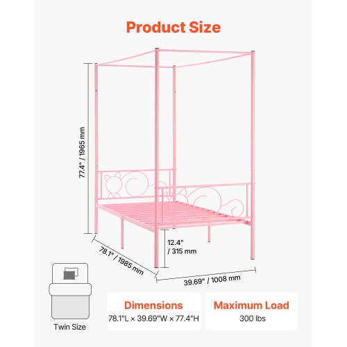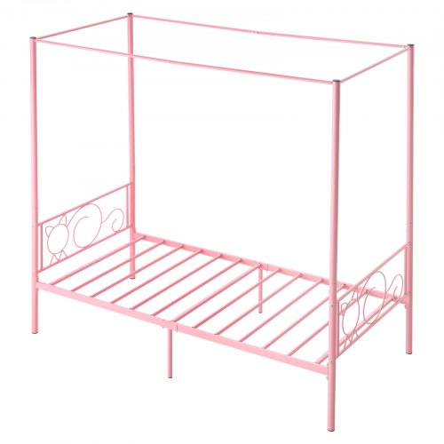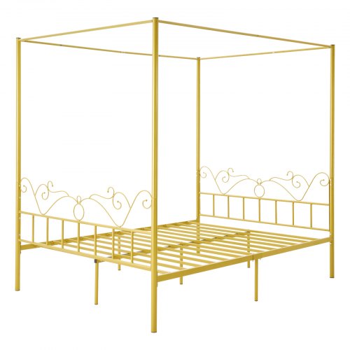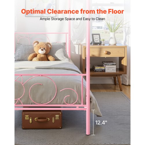 VEVOR King Size Canopy Bed Frame, Metal Canopy Bed with Four Posters Design, Heavy Duty Steel Slats Support, Underbed Storage Space, No Box Spring Needed, Easy Assembly, Black