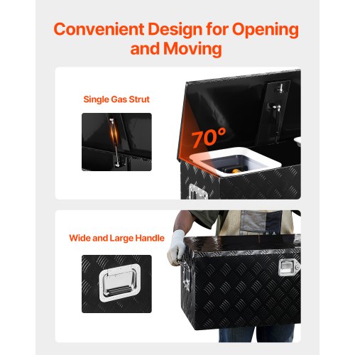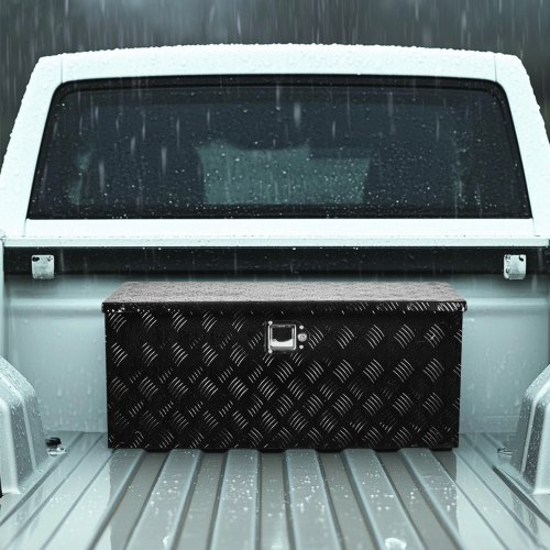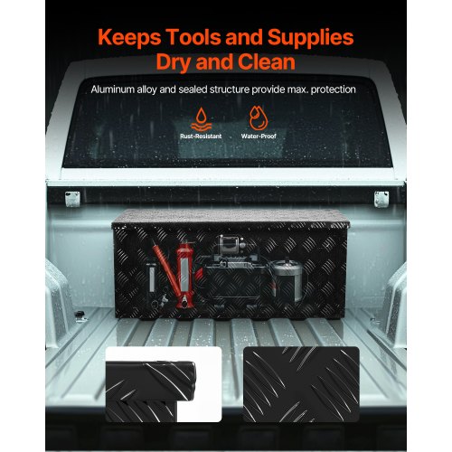 VEVOR Heavy Duty Aluminum Truck Bed Tool Box, Stripes Plated Tool Box with Side Handle and Lock Keys, Storage Toolbox Chest Organizer for Trailer, Pickup, Truck Bed, RV, 30"x13"x9.6", Black