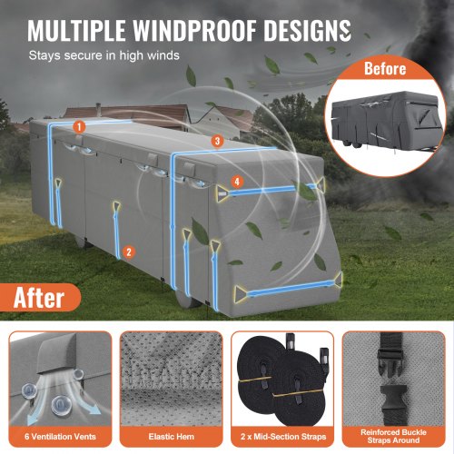 VEVOR Class C RV Cover, 29-32 ft Motorhome Cover, Oxford Fabric Motorhome RV Cover, Waterproof, Windproof and Rip-Stop, Camper Cover with Storage Bag, Repair Patches, Straps and Tire Covers