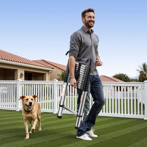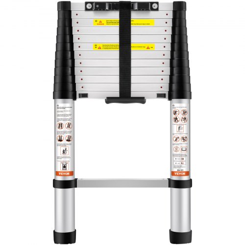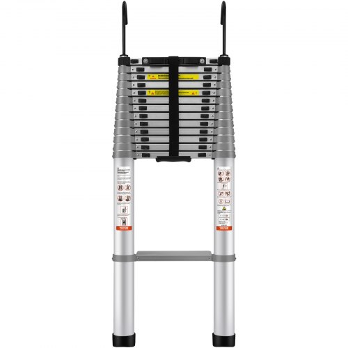 VEVOR Telescoping Ladder, 12.5 FT Aluminum One-button Retraction Collapsible Extension Ladder, 375 LBS Capacity with Non-slip Feet, Portable Multi-purpose Compact Ladder for Home, RV, Loft, ANSI Liste