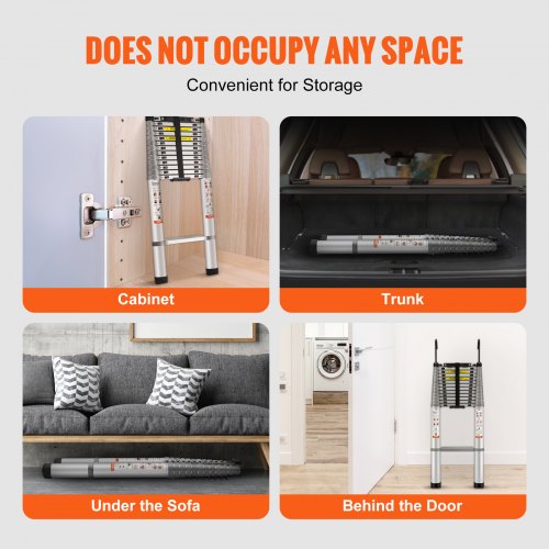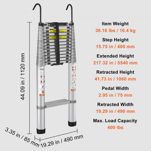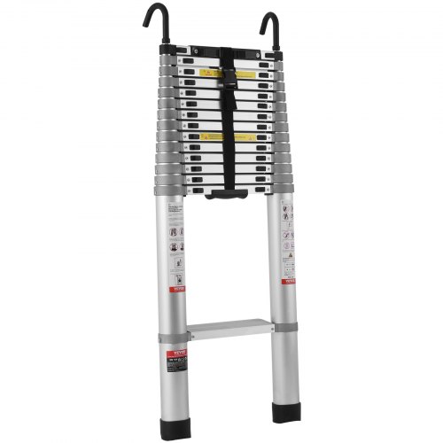 VEVOR Telescoping Ladder, 18.5 FT Aluminum Mutil-button Retraction Collapsible Extension Ladder, 400 LBS Capacity with Non-slip Feet, Portable Multi-purpose Compact Ladder for Home, RV, Loft, ANSI Liste
