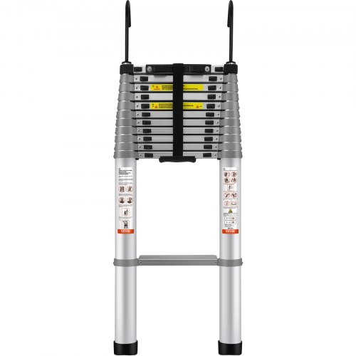 VEVOR Telescoping Ladder, 10.5 FT Aluminum One-button Retraction Collapsible Extension Ladder, 375 LBS Capacity with Non-slip Feet, Portable Multi-purpose Compact Ladder for Home, RV, Loft, ANSI Liste
