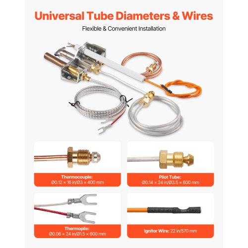 VEVOR Gas Pilot Assembly, OE 4021-732, 25660 Fireplace Gas Pilot Assembly, Natural Gas Ignition Replacement with Pilot Tube, Thermocouple, Thermopile, Wires, Compatible with Heatilator Models