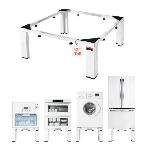 VEVOR Laundry Pedestal, 12 in Height, Washer and Dryer Pedestals with 1200 lbs Weight Load Capacity, 18.7-31 in Adjustable, Non-Slip Feet, Heavy-duty Steel Washing Machine Stand Universal Fit, White