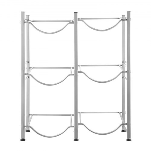 VEVOR 3 Tiers Water Jug Holder, 5 Gallon Water Bottle Holder, Double Row Water Bottle Rack for 6 Bottles, Heavy Duty Water Jug Rack for Kitchen, Office, Living Room, Silver