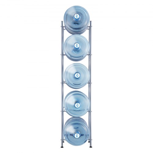 VEVOR 5 Tiers Water Jug Holder, 5 Gallon Water Bottle Holder, Single Row Water Bottle Rack for 5 Bottles, Heavy Duty Water Jug Rack for Kitchen, Office, Living Room, Silver