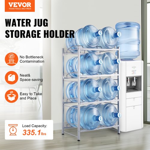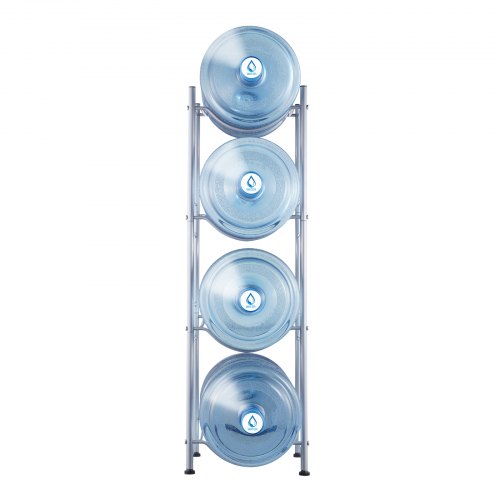 VEVOR 4 Tiers Water Jug Holder, 5 Gallon Water Bottle Holder, Single Row Water Bottle Rack for 4 Bottles, Heavy Duty Water Jug Rack for Kitchen, Office, Living Room, Silver