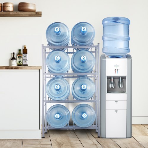 VEVOR 4 Tiers Water Jug Holder, 5 Gallon Water Bottle Holder, Double Row Water Bottle Rack for 8 Bottles, Heavy Duty Water Jug Rack for Kitchen, Office, Living Room, Silver