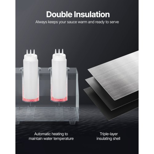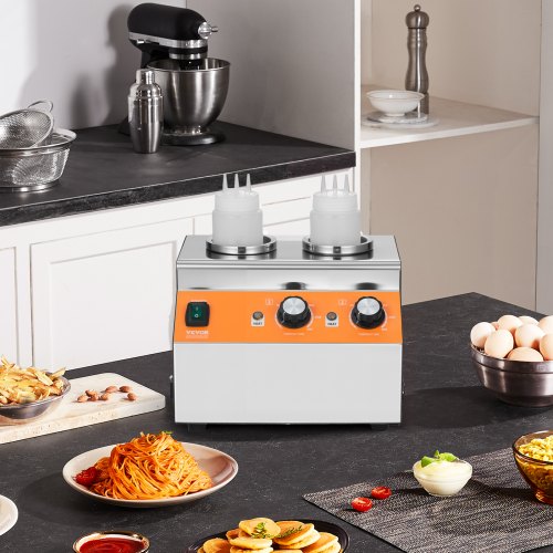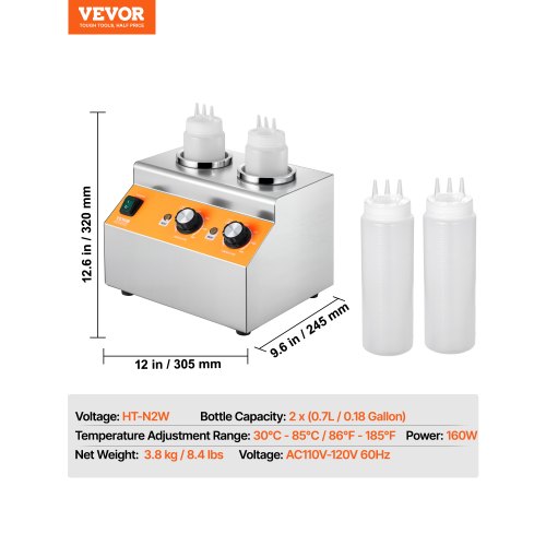 VEVOR Electric Bottle Warmer with Bottles, 0.8x2 LCommercial Cheese Dispenser, Hot Fudge Warmer 86-185℉ Temp Adjustable, Plastic Double Bottles Nacho Cheese Warmer, for Hot Fudge Cheese Caramel