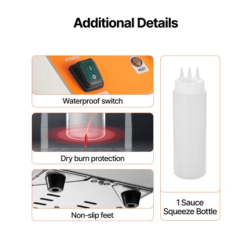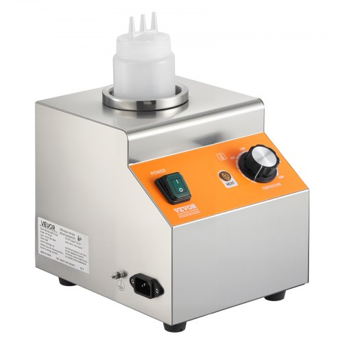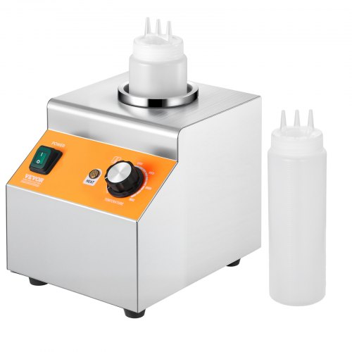 VEVOR Electric Bottle Warmer with Bottle, 0.8L Commercial Cheese Dispenser, Hot Fudge Warmer 86-185℉ Temp Adjustable, Plastic Bottle Nacho Cheese Sauce Warmer for Hot Fudge Cheese Caramel, Square