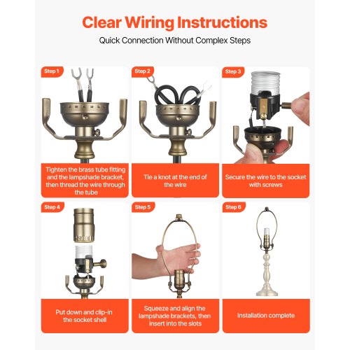 VEVOR Lamp Rewire Kit, E26 Lamp Socket with 12 ft Matching Cord, Antique Bronze Finish, Lamps Making Kit with All Essential Hardware, Light Wiring Kits for Table & Floor Lamps, DIY Rewire or Repair