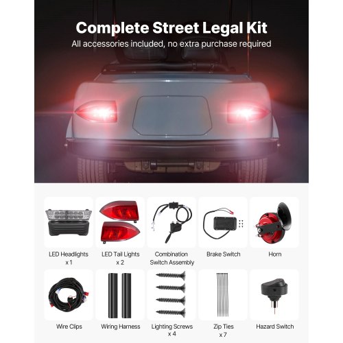 VEVOR Golf Cart Light Kit, 12V, Street Legal LED Headlight and Taillight Kit with Wiring Harness, Turn Signals, Hazard Light, Switch Horn, Brake Pad, ABS Housing, for Club Car Precedent 2004-2008